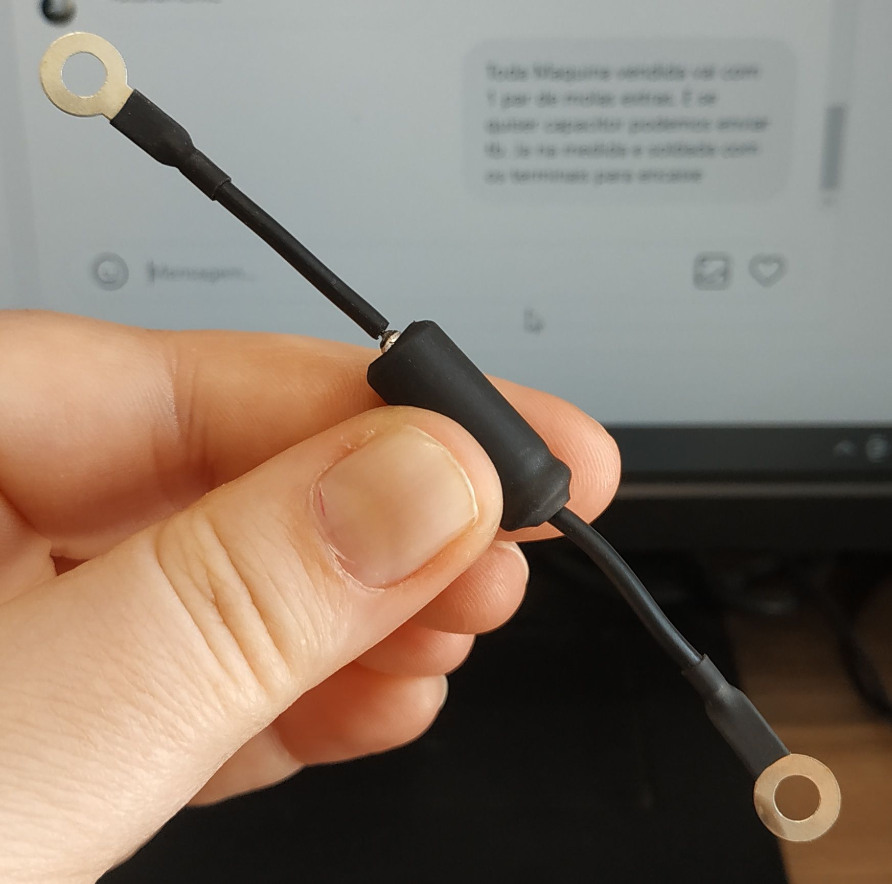 Conjunto com os olhais soldados e termo retrátil.